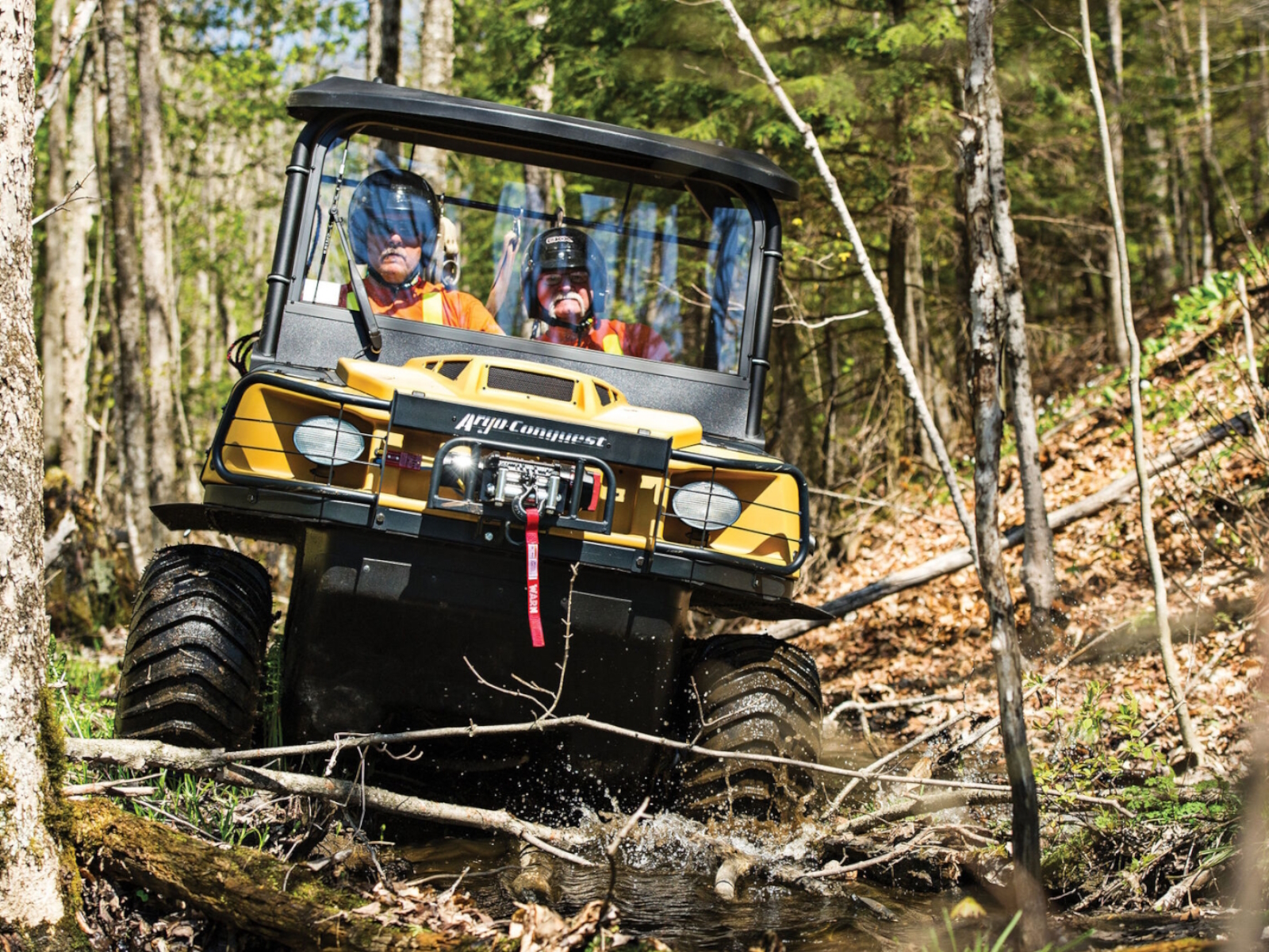 The Conquest XTX has 25” XT119 ARGO-only mud tires with Beadlock steel rims. The chevron treads maximize your power in thick mud and increase your propulsion in whatever waterway you decide to drive in. -