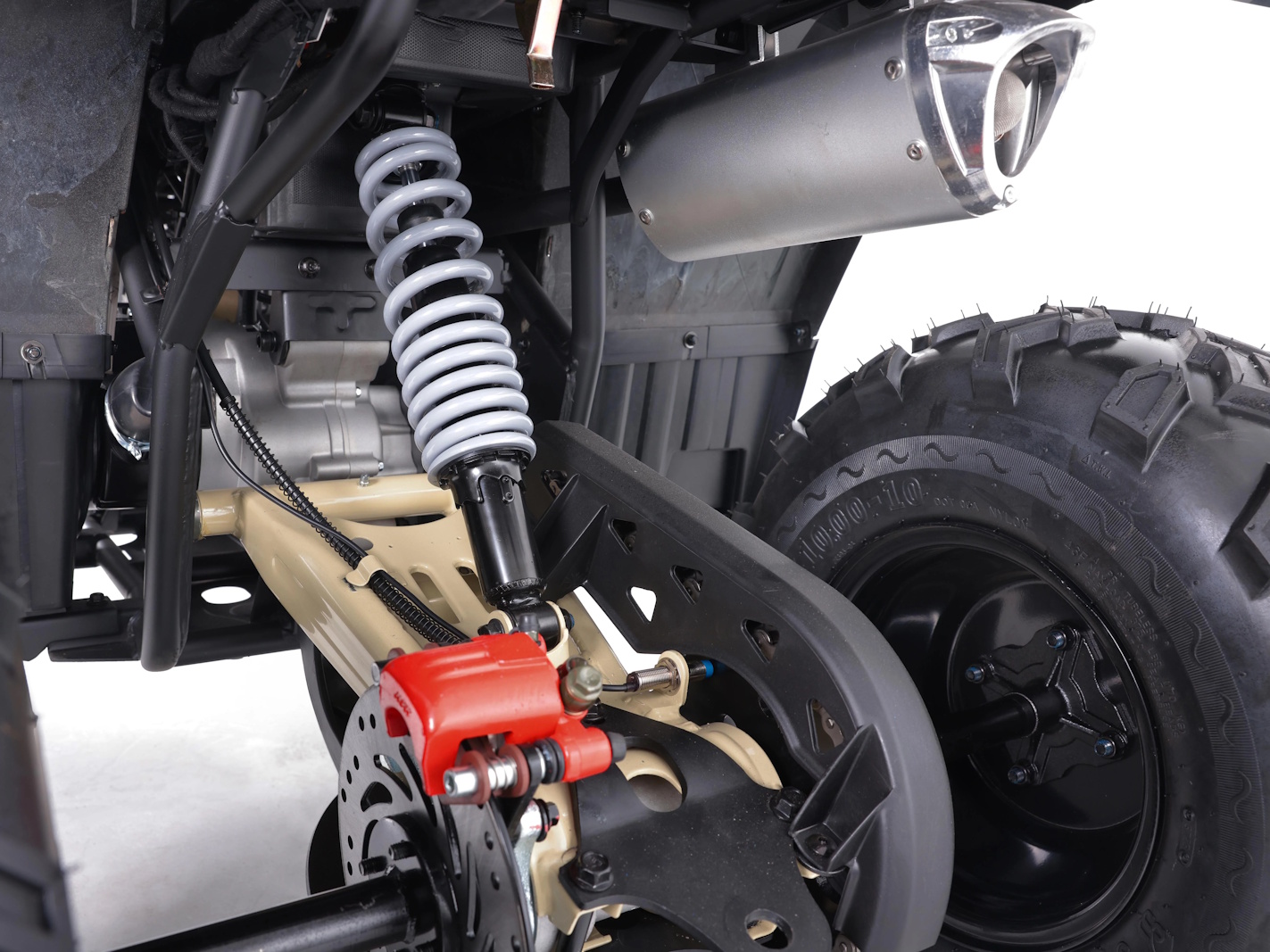 Suspension completes the overall package, and nothing works better than an independent system, whether it’s work or play. Mudhawk 200FI uses a dual A-arm setup in the front and a single mono-shock in the rear.