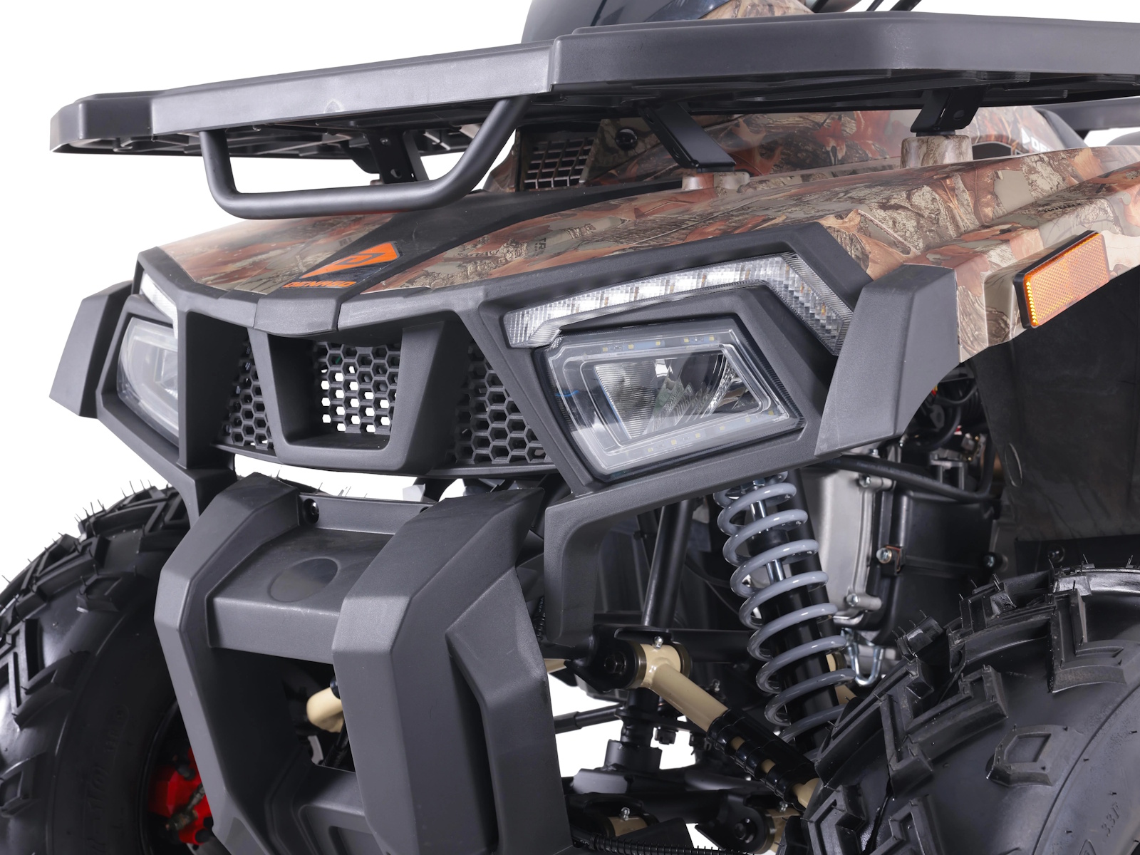 The Mudhawk 200FI offers the best value in full-size ATVs and is loaded with nice features like a fuel injected overhead-cam engine, double A-arm front suspension with adjustable shocks, TFT instrumentation, LED lighting, and aluminum wheels.