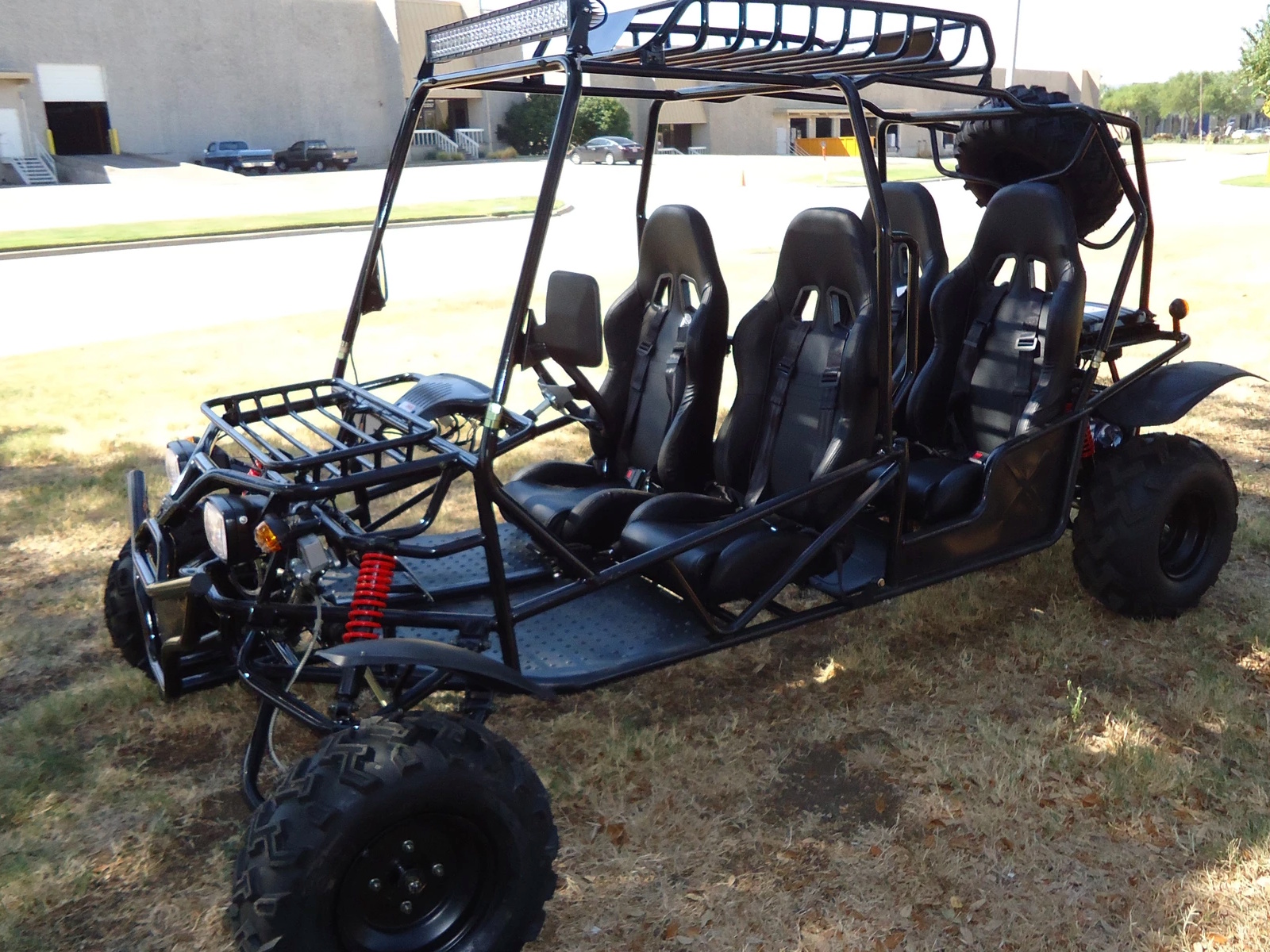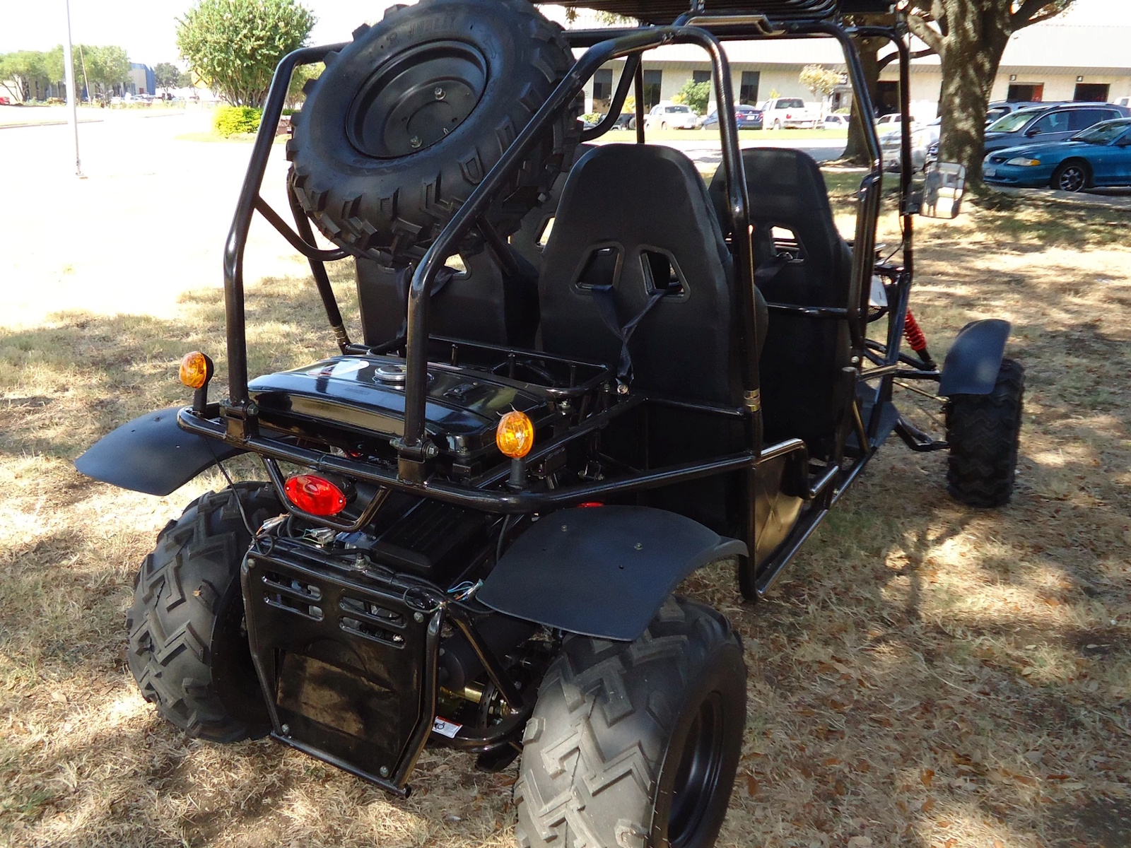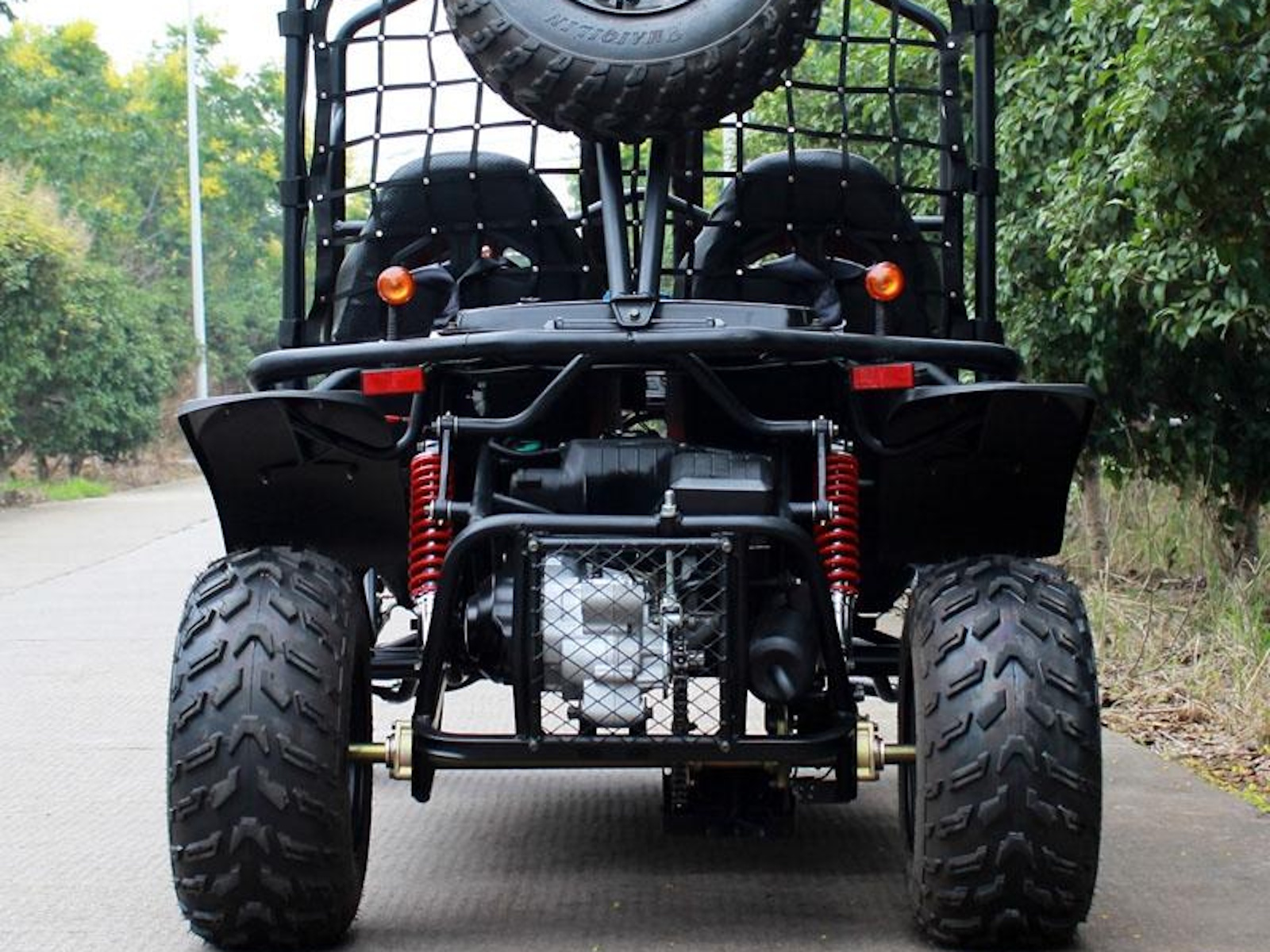 The Hummer 4-Seater Go-Kart features a powerful 200cc engine, durable steel frame, and easy electric start with CVT transmission. Its dual suspension and 21"/22" wheels ensure a smooth ride on any terrain.With free upgrades like top running lights, a spare tire, and knobby tires, it's the perfect choice for off-road fun.