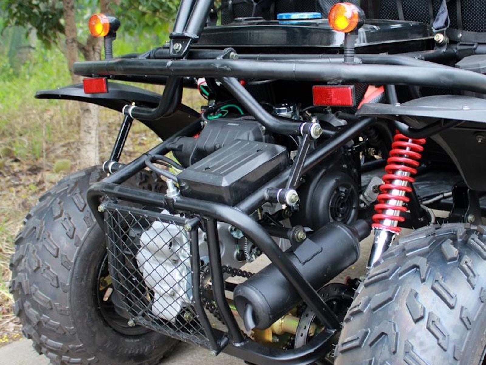 These rugged steel rims offer excellent traction and durability across all terrains. The aggressive tread ensures superior grip, while the larger rear wheels enhance stability delivering a smooth and confident off-road experience