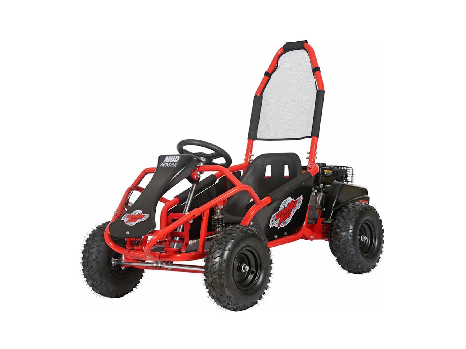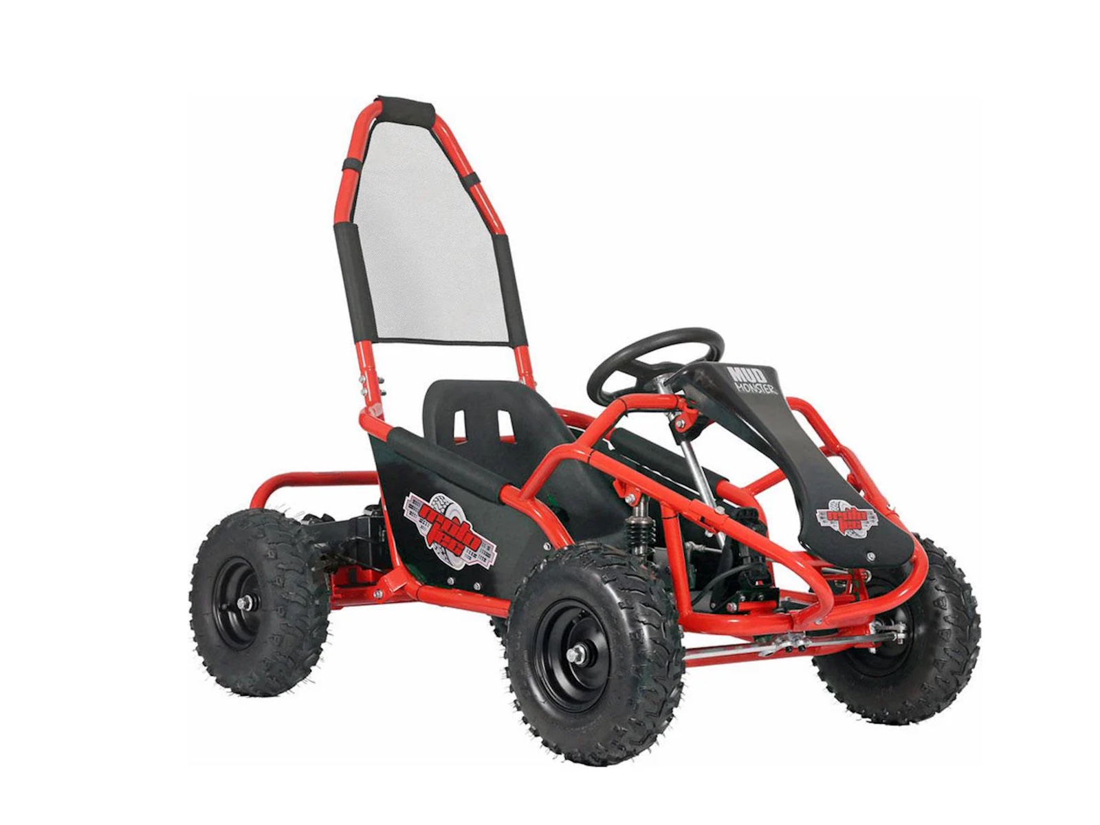 Introducing the Venom Mud Monster 98cc 4-Stroke Kids Off Road Go Kart with Full Suspension! Featuring a robust 98cc 4-Stroke OHV engine, roll cage safety bar, adjustable seat, metal throttle/brake pedals, and more leg room than the competition, plus a seat belt. A go kart that's rugged and built to last!