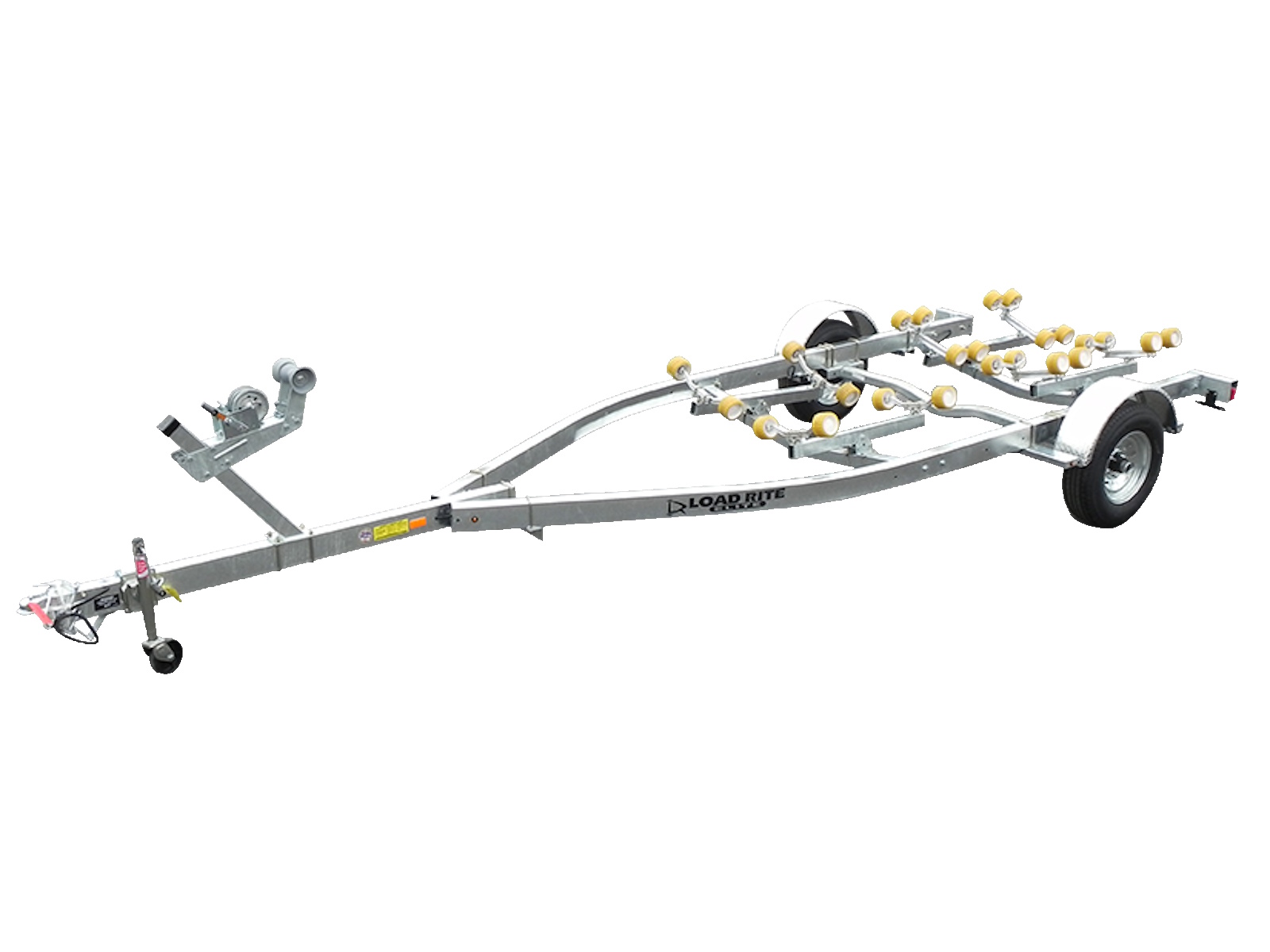 Load Rite roller trailers feature a heavy-duty galvanized steel frame built to deliver years of reliable performance in salt, mud and  fresh water while remaining free of corrosion. Patented tubular construction provides exceptional strength and shrouds wiring and brake lines from damage during use.