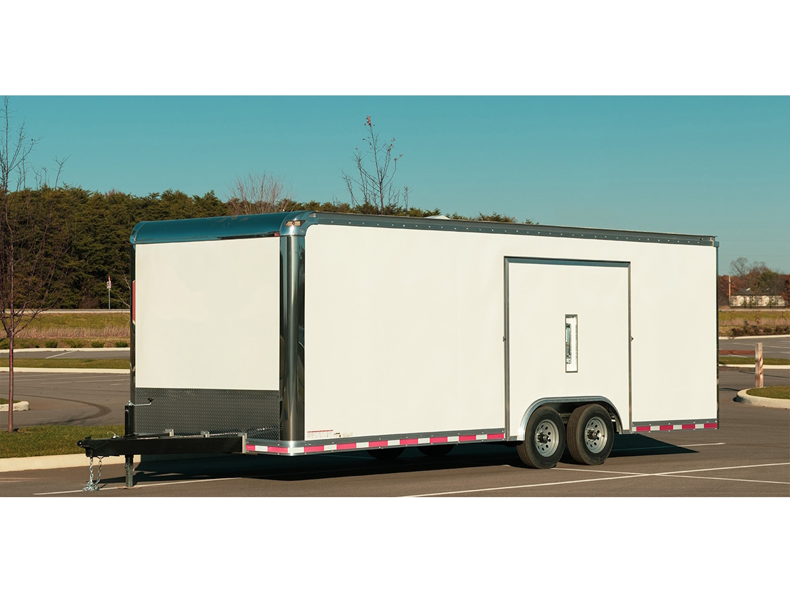 The Premier 8.5’ Wide Race Trailer widebody is top-of-the-line. The Premier is our top-of-the-line race trailer, with high-end standards that you may also want in your contractor or landscaping unit. We’re pushing the limits with this trailer, offering more features and more standard upgrades than most cargo trailers. Not seeing the exact detail you need? You have 20-25 ft. of space to fill with an unlimited amount of options. Four 5,000-lb. D-rings are recessed and bolted into a heavy-duty 3/4” floor complete with automotive undercoating. Moving up, front- and rear-cast corners with stainless steel insert create a flawless exterior, while Premier is in tip-top shape thanks to a white vinyl insulated ceiling liner and a one-piece aluminum roof. Dual deluxe dome lights with switch, a 48” entry door with flush lock and a heavy-duty ramp door with spring assist add to loading convenience.