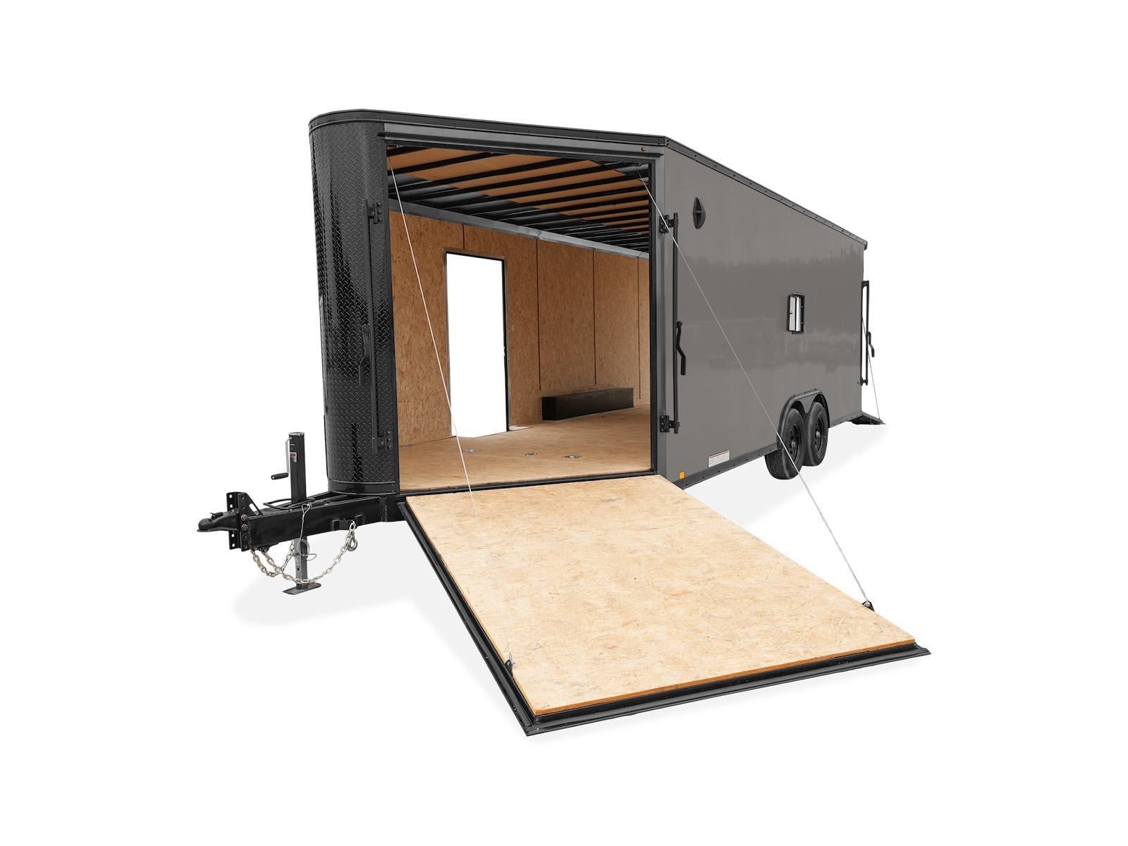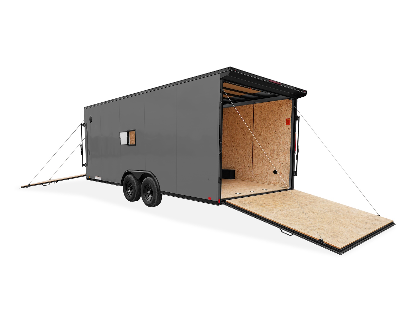 The ELEMENT® SE FLAT TOP AERO WEDGE MOTORSPORT TRAILER is a top-of-the-line trailer designed specifically for sports enthusiasts. With its flat top design, 60″ Aero Wedge, and radius nose, it offers excellent aerodynamics and reduced wind resistance during transportation. The trailer’s 16″ on-center full-height cross-members and 16″ on-center roof bows ensure structural integrity and stability. Its 78″ interior height provides ample space for loading and unloading sports equipment. The trailer is equipped with a range of standard features, including a 2 5/16″ straight coupler, safety chains, and a 5K drop leg jack for secure towing. It also features smooth aluminum fender flares, drop spring brake axles, and superlube hubs for easy maneuverability and protection against debris. The high-performance wood walls and trim, along with the 3/4″ high-performance wood flooring, provide a sturdy and durable interior. The trailer’s automotive undercoating and lauan ceiling liner strip offer added protection and insulation. It features (4) 5K D-rings for securing sports equipment during transportation. The trailer’s 7-way electric plug and breakaway battery with a switch ensure convenient and safe towing. It is equipped with bullet LED marker and clearance lights, as well as slimline LED tail lights with an integrated backup light, for visibility and safety on the road. The trailer’s (2) LED dome lights with a switch provide interior lighting. Its 0.030 aluminum exterior with color-matching rear hoop, screwless exterior, and ATP nose cap offer a sleek and clean look. The trailer’s 24″ tall straight ATP stone guard, 2.5″ top trim, and 1.5″ bottom trim provide a finished and polished appearance. Its seamless aluminum roof ensures durability and protection against the elements. The trailer’s 36″ wide entry door with a flush lock and interior recessed step allow for easy access. It is equipped with a metal wire door holdback for secure storage. The rear ramp door with spring assist, 4000 lbs capacity, 12″ wood ramp flap, and large J-trim make loading and unloading sports equipment and vehicles a breeze. The trailer’s sidewall vents and 61″ wide wedge ramp door with spring assist ensure proper ventilation and easy access to the interior. The trailer is available in various models, each with a different GVWR, ranging from 7000 to 9900 lbs. Its main frame is made of 6″ tube and features a beavertail and a 6″ A-frame and center drawbar tube tongue. The trailer’s tires are either ST205/75R15 ‘C’ radial tires or ST225/75R15 ‘D’ radial tires, depending on the model. Overall, the ELEMENT® SE FLAT TOP AERO WEDGE MOTORSPORT TRAILER is a reliable and high-quality trailer that provides the necessary features and specifications for transporting sports equipment and vehicles.