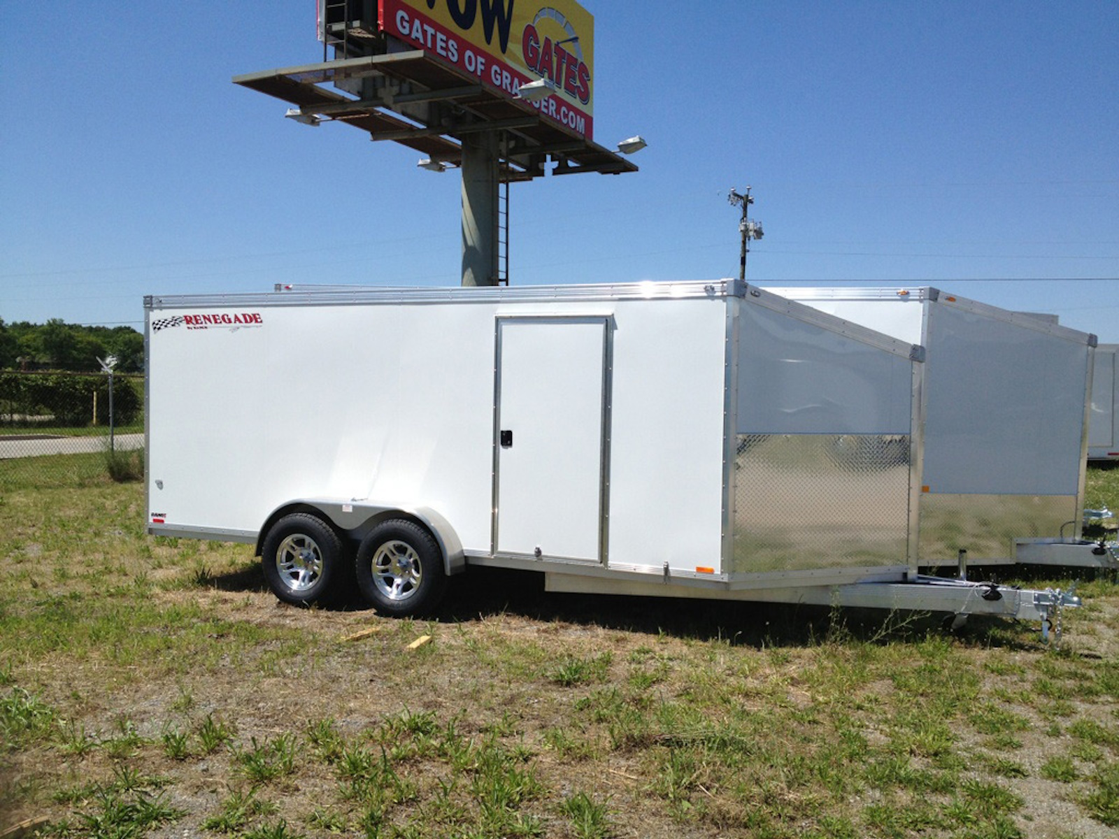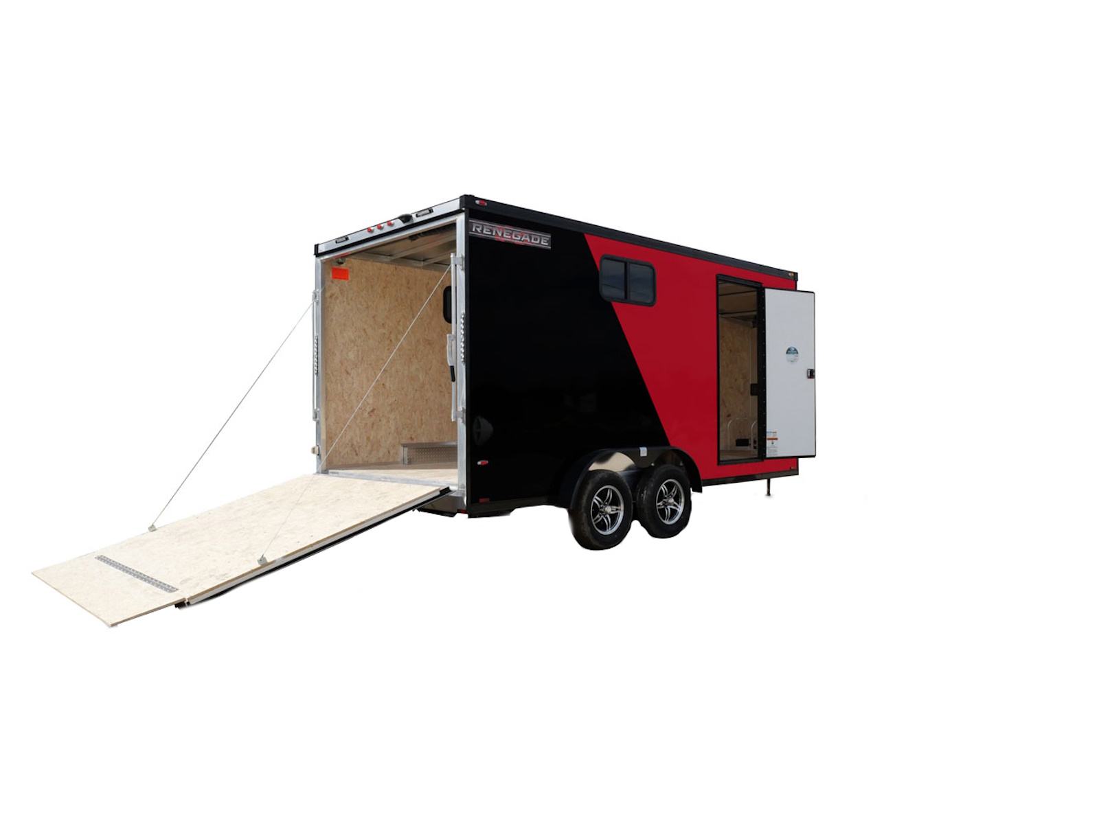 Rance Aluminum Cargo trailers are built with the same quality materials as the large car haulers. The Renegade Model includes a 5-year warranty, aluminum rims, engineered flooring, stainless steel hinges, and a deluxe side door.